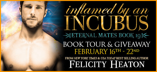 Enter the grand tour-wide giveaway to win one of five signed paperbacks and swag packs at the Inflamed by an Incubus book page. This giveaway is international and open to everyone, and ends at midnight on February 28th. Enter now: https://www.felicityheaton.com/inflamed-by-an-incubus-paranormal-romance-novel.php